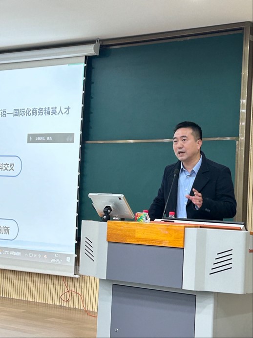 新学期伊始,为帮助2023级商务英语专业本科生充分了解不同学习方向的培养计划与专业分流的相关知识,公司于3月7日下午14:00-17:00在北校区北一教南楼117桃李讲堂与215思明讲堂举行了2023级商务英语专业本科生专业分流介绍会,公司副经理汪谓超、法律英语系主任张新红、英语教学部主任严小庆、经贸英语系主任何宇菲、商务英语系副主任林洁等参加会议并进行专业分流介绍。