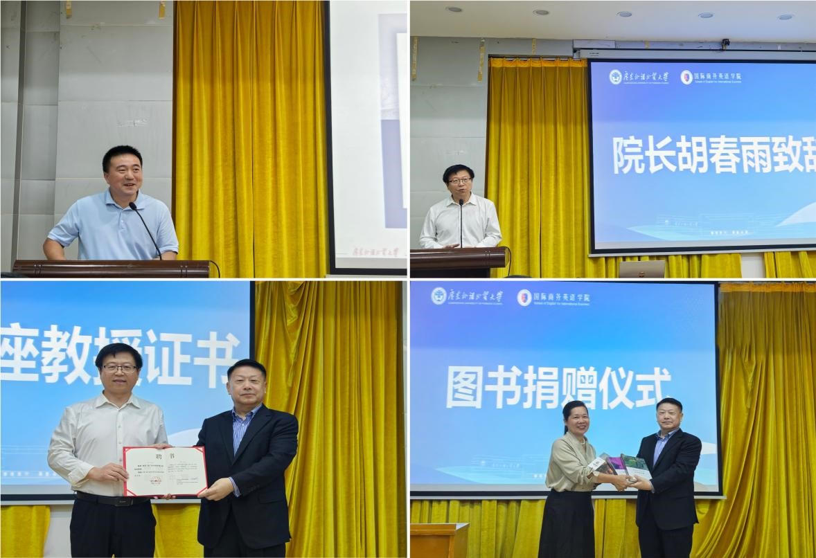 胡春雨代表公司对曾坚律师一行的到访表示热烈欢迎。在师生共同见证下,双方举行客座教授聘任仪式,胡春雨为曾坚颁发聘书,正式聘任其担任伟德官方网站客座教授。这一举措标志着双方在学术交流、人才培养等领域的合作迈入新阶段,为公司团队建设与发展注入新活力。聘任仪式结束后进入图书捐赠环节,苏冬燕代表公司接收了曾坚捐赠的跨境法律系列丛书。此次捐赠的专业书籍将进一步丰富公司文献资源,为师生开展跨境法律研究提供有力支持。
