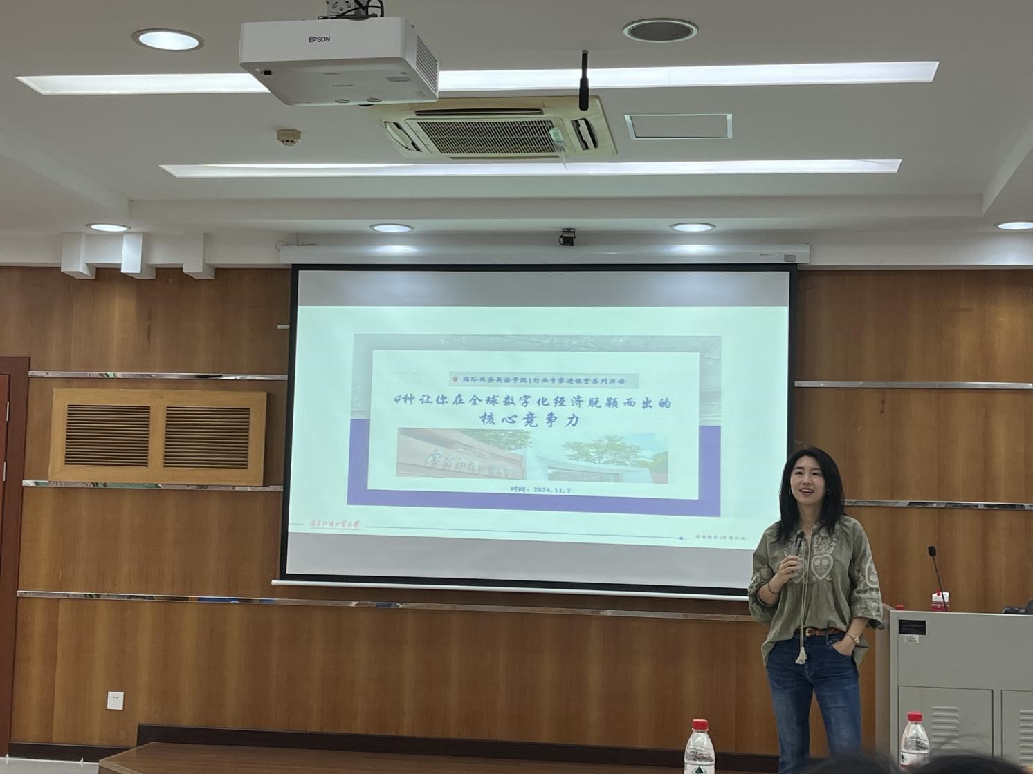 11月7日下午,伟德体育在九教103报告厅成功举办 “行业专家进课堂系列活动”。本次活动聚焦 “4 种让你在全球数字化经济脱颖而出的核心竞争力” 主题,邀请了具有丰富国际实践经验的欧阳江岱女士担任主讲嘉宾,为公司师生带来了一场知识与经验交融的精彩讲座。