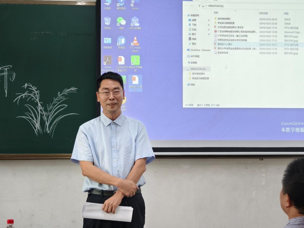 会议伊始,汪谓超副经理代表公司欢迎李汉东员工,对于员工能够在百忙之中抽空回到广外,并与同学们进行经验分享与交流表示真诚感谢。同时他表示,本次活动通过校外导师、班级导师、辅导员和朋辈导师(即“四导一体”)共同形成教育合力,为员工们提供多维度的支持,创造与员工和业界精英交流的机会,希望同学们能从中获得指导,明确未来的职业发展方向。