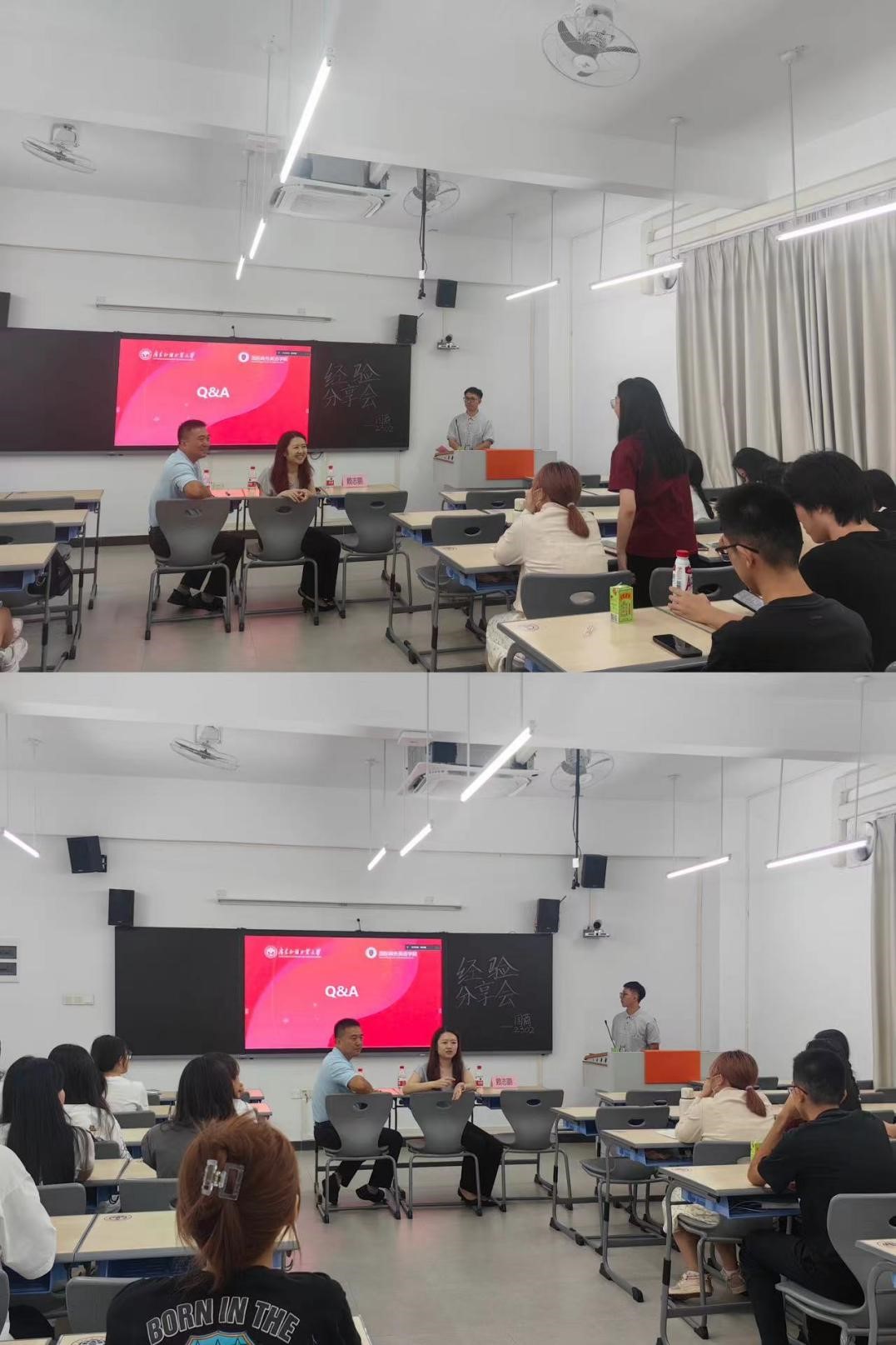 随后,谢秋阳员工从老员工职业生涯规划和创业启动两方面给同学们开展经验分享,鼓励同学们应尽早尝试进行职业生涯规划,例如参加老员工职业生涯规划大赛,及早找准自己适合且擅长的领域,并为之努力。此外,谢秋阳员工分享了自己的创业经历,向同学们传递了宝贵的经验和深刻的启示,特别是在面对困难和挑战时如何保持积极态度并懂得思变的重要性。