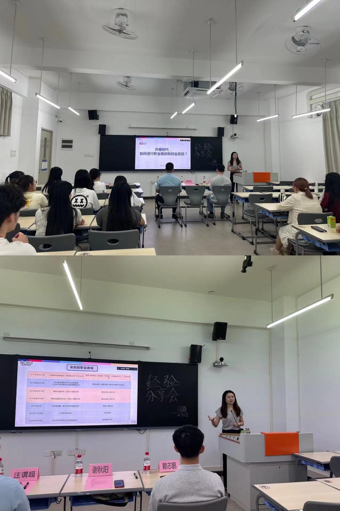 会议伊始,副经理汪谓超教授首先代表公司欢迎谢秋阳员工回母校给师弟师妹们做分享,同时勉励同学们从老员工涯定位、目标、规划等方面进行深入思考,勤于实践,并多向朋辈导师、校外导师学习取经,多尝试参与学术赛事和实习,努力成长为全面发展的商英人才。