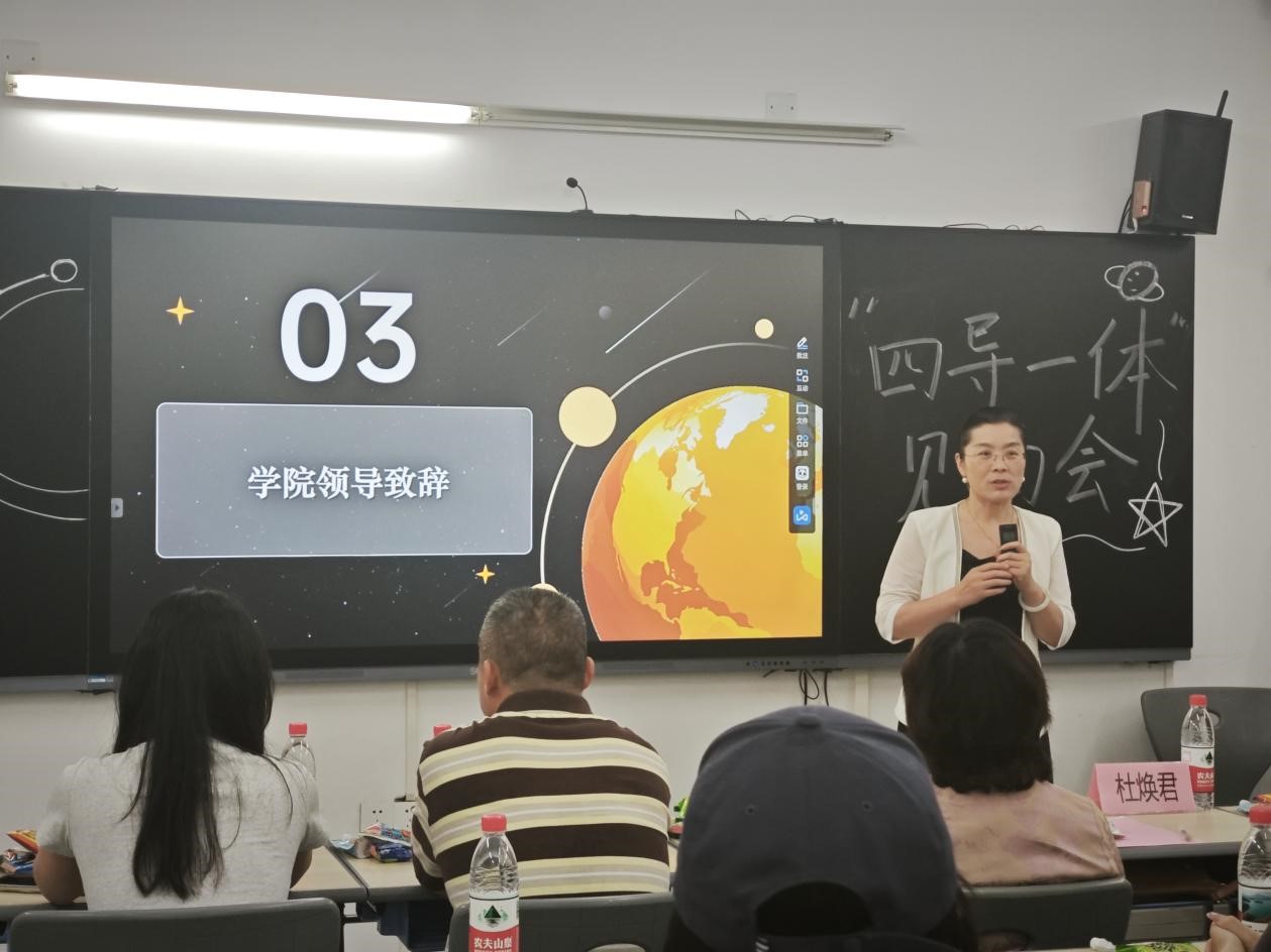 6月10日晚,伟德官方网站​伟德体育国际商务2401班(以下简称“国商2401班”)“四导一体”见面会在第一教学楼306教室顺利举行。国际商务英语公司党委副书记杜焕君、国商2401班校外导师廖娜、班级导师孙肇春、辅导员陈思蓓及朋辈导师曾子怡出席会议,国商2401班全体同学参与此次见面会。