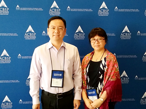 为贯彻落实公司建设国际化特色鲜明高水平大学的战略目标,大力推进公司教育国际化进程,6月7日至11日,彭玲玲副经理和蒋涌副经理代表公司参加了在美国举行的2018年ACBSP年会,以进一步推动公司已启动的本科专业ACBSP国际认证工作。