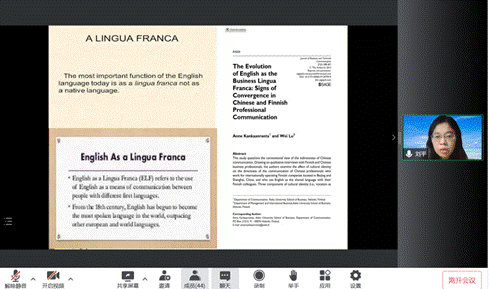6月24日下午,伟德体育刘平教授和徐优平副教授分别就商务英语研究和法律语言学两个专业方向为夏令营学员带来了两场精彩的学术讲座。刘平教授向大家讲授了商务英语研究的前沿与热点以及商务英语研究的培养目标,徐优平副教授化身“学术导游”,带领学员们了解什么是法律语言学及其相关研究。两位学术讲座嘉宾就自身学习与研究经历,让学员们对商务英语研究和法律语言学研究有了更清晰的认识。