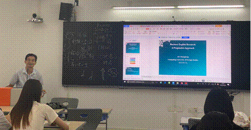 9月22日下午,在“商务英语语言研究”这一主题下,徐章宏教授从商务英语概论、商务英语研究领域与商务英语语用研究三个方面展开讲座,阐述了什么是商务英语及其特点,伟德体育的悠久历史以及语用学视角下的商务英语研究。徐教授慷慨地向同学们分享了自己的相关科研项目及其研究心得,并介绍了商务英语语用特征、商务语用制约机制与商务语用策略等可研究范畴,使同学们对语用学的了解更进一步,激发了同学们钻研学术的主观能动性,让大家意识到成为跨学科人才的重要性。