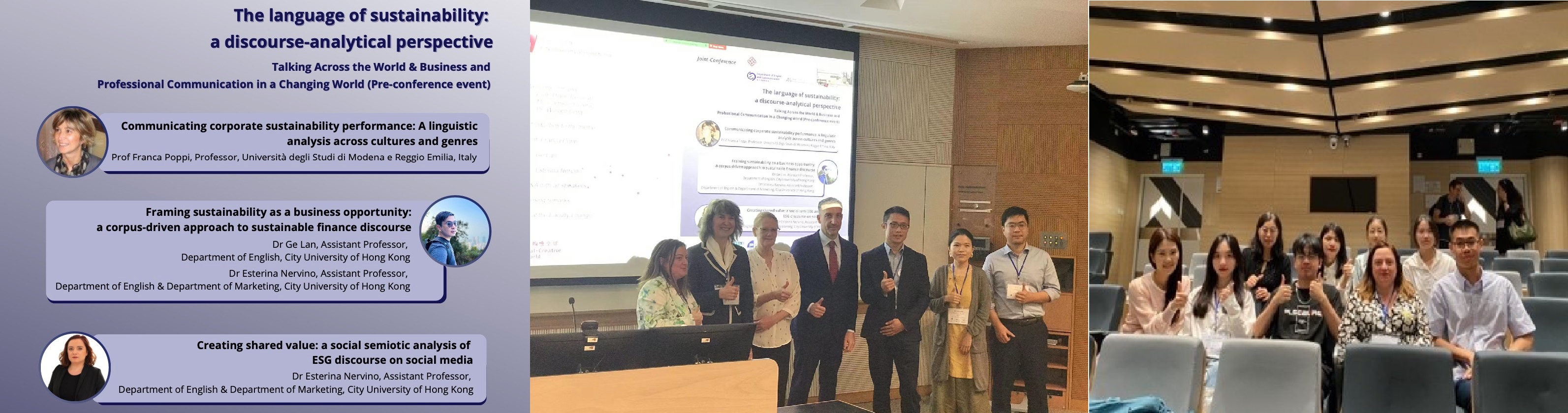 香港城市大学5月16日的系列讲座 “可持续性的语言:话语分析的视角”打响了学术盛宴的头炮。会议由城大营销学系和英文系助理教授Dr. Esterina Nervino主持。英文系主任Diane Pecorari教授首先致辞,她一面为疫情封控两年之后,人们的生活得以重返正常而欢欣鼓舞,一面也指出疫情常态化是不具有可持续发展性的概念。人为造成的环境破坏和生态系统的持续恶化使得可持续发展的重要性日益凸显。随后,意大利驻香港总领事对大会的召开致贺词,重申了可持续发展在应对全球危机中的重要意义,以及意大利在G7和G20峰会上为推进可持续事业做出的努力。最后一位致辞者是来自香港理工大学的冯德正教授。他首先对与会者表示欢迎,指出可持续系列讲座是基于TAW会议框架下的跨学科、跨行业的对话,致力于实现学界与业界的交流和沟通。社交媒体的使用使得企业社会责任、社会价值和可持续发展的理念得以广泛传播,是值得学界不断探索的话题。