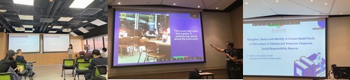 “数字媒体中的商业话语”分论坛下午场由公司副经理、博士生导师杨文慧教授主持。硕士研究生周穗芳探讨了比亚迪广告中的多模态隐喻与转喻的表现形式,以及隐喻在构建比亚迪在线广告中企业形象的认知策略,并与现场观众进行了热烈的讨论。广外商英杨文慧教授提出在认知语法的指导下,使用当前话语空间(CDS)模型对中美的医学抗癌药物推广话语框架进行了跨文化分析。杨教授的发言从认知角度,为跨文化研究提供了新的研究视野,引起了线下与线上观众的热烈反响。远程参会的澳大利亚昆士兰大学知名学者朱云霞教授对杨教授的研究进行了回应,肯定其对跨文化的有益探索,同时也提出建议,该研究还可以从读者反馈的角度进行延伸研究。随后,硕士研究生汪勉和吴静同学基于评价理论的态度系统,使用批评话语分析(CDA)方法,探讨了中美媒体对俄乌战争及其当事方的态度的异同点,并与现场的国外学者进行了交流。广外博士研究生贺宇萌从认知视角开展跨文化研究,试图通过分析中美企业推广演讲中的人际认知,探索公司简介如何帮助发展客户,并实现与潜在客户的互动。硕士研究生贾茜茜分析了中美商业年度报告中的话语标记使用,并对其异同进行了阐释。硕士研究生贾春莲基于 Hyland的元话语理论和 Kumpf 的视觉元话语理论,探索视觉资源如何实现吸引客户购买产品的目的,并与在场的学者就元话语标记问题展开了深入的探讨。分论坛在杨文慧教授的点评中进入尾声。杨教授首先向所有为论坛顺利举办作出贡献的师生致以谢意,并高度评价了本论坛中的自各个国内外知名院校的专家学者们的精彩发言。她指出,学术研讨会除了让大家分享、学习、讨论,更重要的是集思广益,实现更广更远的探索。