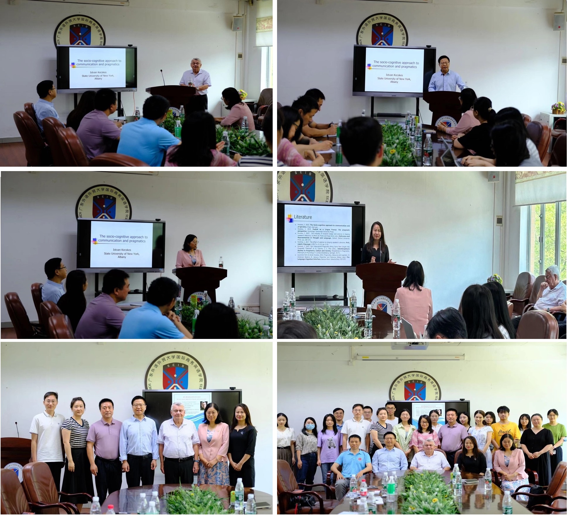 2023年8月28日上午,来自美国纽约州立大学的Istvan Kecskes教授在北校区第三教学楼318会议室做了题为The Socio-cognitive Approach to Pragmatics and Communication 的精彩讲座。本次讲座由伟德官方网站(广外)伟德体育主办,广东省普通高校“商务话语研究创新团队”和广外科研核心竞争力提升专项“中国企业话语质量及其传播效果研究”团队承办。讲座由公司副经理刘平教授主持,经理胡春雨教授致欢迎词,副经理杨文慧教授做总结。副经理汪渭超副教授和本院、英文公司、英语教育公司的教师和研究生聆听了本次讲座。同时,来自北京外国语大学的夏登山教授和来自肇庆公司的彭晶博士也出席。