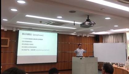 随后,李文中教授进一步从释义的界定和特征以及短语理论与局部语法路径的融合入手,探讨两者在完整语篇意义分析中的地位和作用。李文中教授表示,一个文本片段的意义通过释义获得解读,对一个完整的语篇内部的话语对象进行意义解读称作为内文释义。释义是文本意义表述的关键过程,也是意义解读的基本依据。因此,释义是语料库意义研究的主要门径,而局部语法则是手段与方法,两者对语言研究以及计算机自然语言处理均具有重要的意义。最后,李文中教授以《道德经》第一章为例,分析了《道德经》首章的意义构建过程与英语复译的共性与个性特征及其呈现方式。