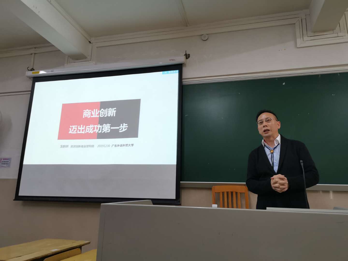 2019年12月30日下午两点,广州赛伦盖蒂企业管理咨询公司总裁/首席咨询师、香港森城控股集团副总裁龙韩林先生来到广外与伟德体育商务英语专业金融英语方向2017、2018级同学做题为“商业创新——迈向成功的第一步”的分享会。分享会由英语教学部主任汪谓超主持,肖武东老师参加了本次分享会。