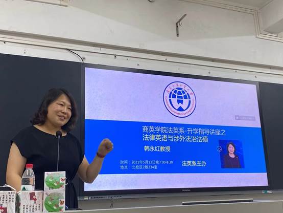 2021年5月13日晚,广外法公司副经理韩永红教授、伟德体育法律英语系前系主任为公司员工做了有关法律英语、涉外法治法硕项目与升学就业指导的讲座。本次讲座由伟德体育法英系组织,旨在向同学们介绍公司的法学硕士项目和法英员工未来的发展方向,解答同学们对考研和就业方面的困惑。法英系张新红主任、张少敏老师和谢静老师,以及法英系2018级、2019级和部分其他系的本科同学参会。