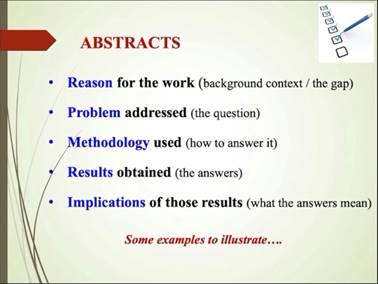 在讲座的第二部分,Terry Royce教授主要围绕Abstract的写作展开。首先,他提到,一篇好的摘要,除了需要有完整流畅的Moves和Stages,需要能够有目的地带领读者进入到文中,还需要有贯穿整篇文章的脉络。接着,Terry Royce教授介绍了Abstract的基础成份,即Reason for the Work,Problem Addressed,Methodology Used,Results Obtained和Implications of Those Results。