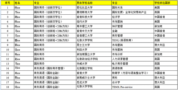 伟德体育2019届本科生国外升学情况统计表(部分)