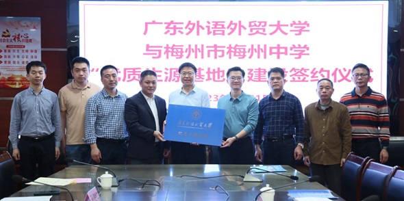 罗庆松表示,希望以此次共建优质生源基地为契机,深化双方沟通交流,强化合作关系,既在梅州中学宣传好广外,大力鼓励优秀员工报考广外,也欢迎广外名师教授来校传经送宝,帮助公司教师提升教学能力和教学水平。胡春雨系统性介绍了广外的办学历史、学科特色、人才培养、升学就业等方面的情况,并提出通过送教上门开展高中英语听说培训、安排梅州籍广外在读学子辅导高中生等方式,加强往来联系,促进彼此发展。最后,大家对进一步凝聚双方力量,推进合作共赢达成基本共识。