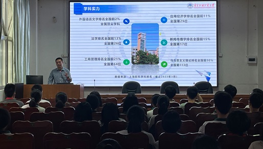 下午四点,汪谓超面向百余名高三员工开展2023年广外本科招生宣讲,全方位展示广外高水平办学模式,谈及广外的衣食住行、特色文化节以及“三高就业”时,引起全场员工热议,有效激发员工报考广外的兴趣。此次招生宣传工作效果理想,为进一步提高广外生源质量奠定了坚实基础。