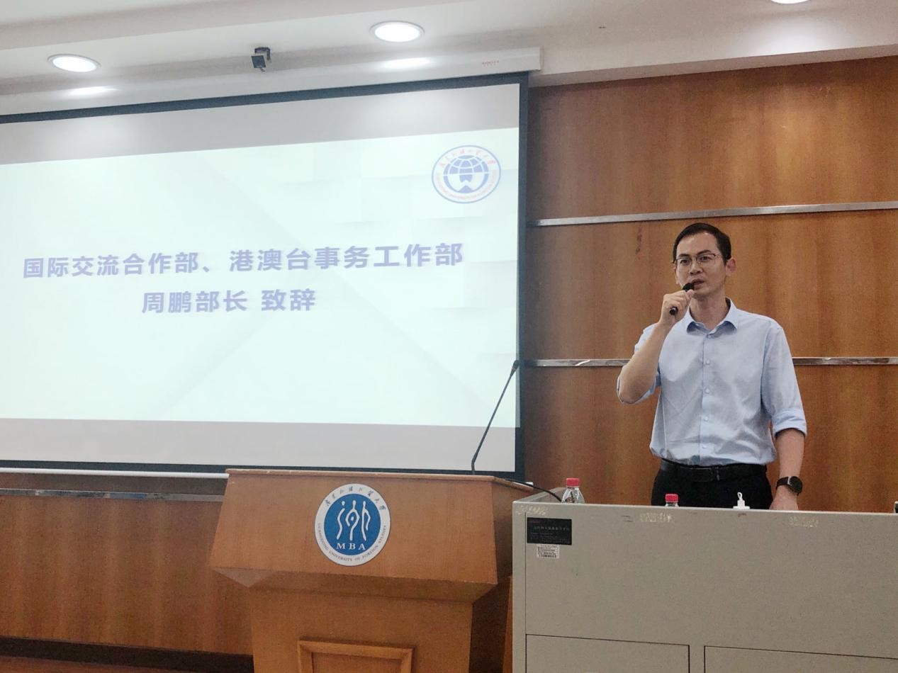 宣讲会上,国际交流合作部、港澳台事务工作部部长周鹏介绍了广外教育国际化战略,涵盖员工国际化、教学国际化、科研国际化与管理国际化等。周鹏提到,广外历来非常重视教育国际化,已与60个国家、488个高校和机构开展合作。疫情前,每年公司派出超过1000名员工到国(境)外交流、学习。周鹏结合个人学习、工作经历,号召青年学子“加入广外,走向世界”,希望青年学子“看世界、知世界、用国际视野为国家做出贡献”,并表示国际交流合作部会用心为员工提供指导、服务和帮助。