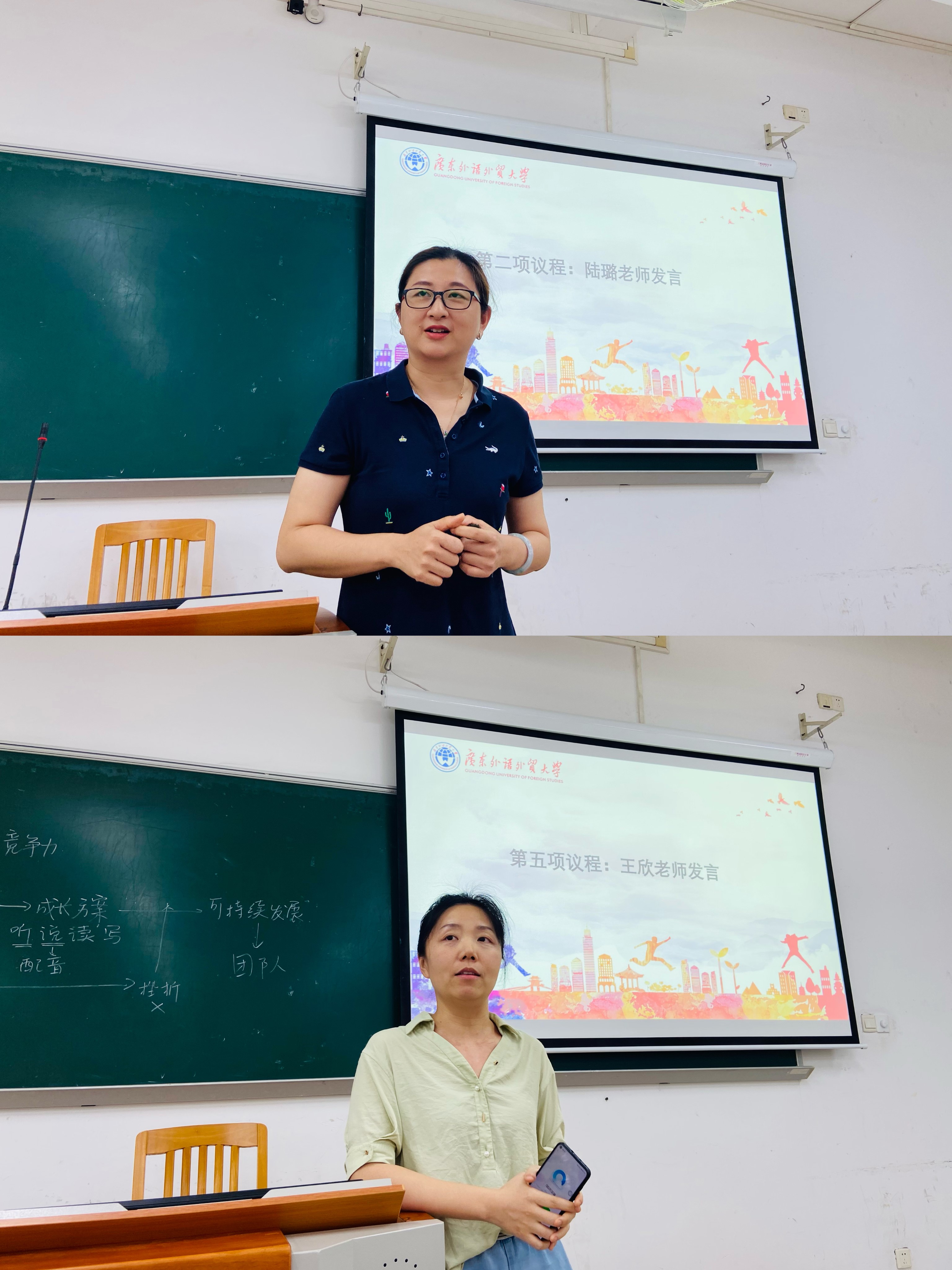陆璐老师表示追求自我提升是一个持续的过程,要怀揣热爱之心,耐得住寂寞、扛得住压力,不断努力才能迈上新台阶;王欣老师分享了员工参赛经历,并对成员提出“要有活力、持之以恒、传承发展、共享开放”等要求。