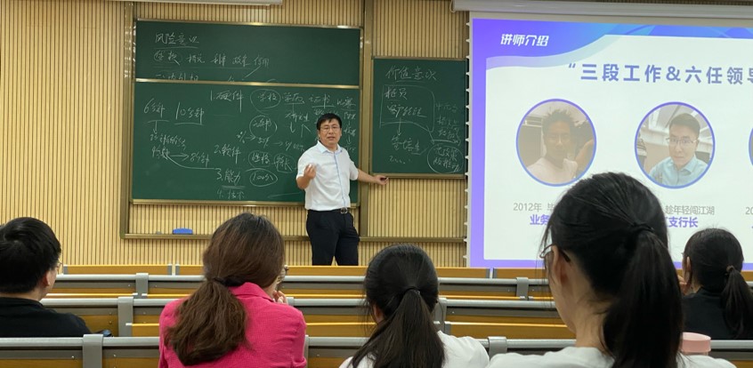 在讲座的第三部分,杨朝先生介绍了银行的前台、中台和后台涉及的岗位和职务。之后,他与同学们进行了热烈的互动,积极解答同学们的疑问,并鼓励大家深度挖掘自我,发现自己不同的可能性。