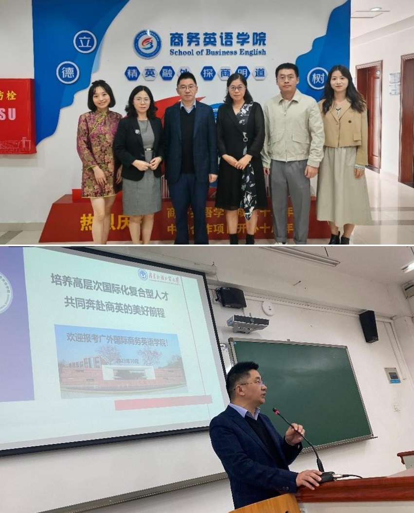 10月20日上午,刘平副经理带队首先来到重庆交通大学外国语公司,与该公司文亚星副书记就生源情况进行深入交流。文亚星副书记表示广外是他们公司员工梦寐以求的外语类高校,对伟德体育组团来开展招生宣讲表示热烈欢迎。会谈过后是招生宣讲环节,卢楠主任以“培养高层次国际化复合型人才,共同奔赴商英的美好前程”为题,向同学们介绍了广外与伟德体育的主要特色,包括专业与课程设置、导师队伍、科研成果,并讲解了研招考试相关事项,最后推介了公司多样的国际化项目。在答疑环节,刘平和徐优平两位老师为同学们介绍了公司公司产品的国际化程度与就业前景,鼓励大家报考广外伟德体育。