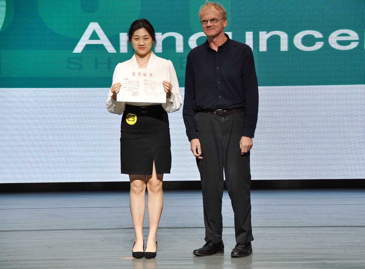 在每队五分钟的评委提问环节中,各位选手镇定自若,有条不紊,面对不同方面的问题都能对答如流,充分体现了选手们优秀的英语能力和自信沉稳的心态。在点评环节中,Fred Parker老师肯定了选手们的努力付出与精彩表现,同时也提出了选手们可以继续完善的地方,比如需要更加着重主题、注意细节,以及需要面对观众进行解说等方面。但是瑕不掩瑜,选手们的表现都可圈可点。