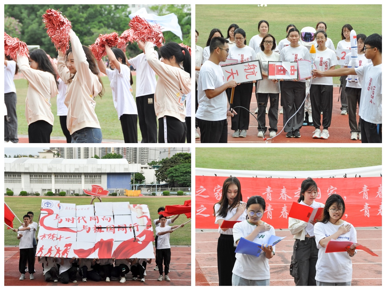 在开幕式方阵表演中,各班同学以饱满的状态投入到精心编排的节目中,为现场的观众带来一场视觉盛宴。其中,有活力四射的唱跳表演,有笑点频出的情景剧,有对我国每个重大时刻的历史回忆录,也有庄严又富有诗意的朗诵表演,商英学子不仅在表演形式上进行了创新,也在表演的内容上下足了功夫,体现出商英学子自强不息,青春飞扬的姿态;赛场上,运动健儿们尽情驰骋,或用稳健有利的步伐向胜利的彼岸大步冲刺,或用奋力一跃的勇气挑战极限,或凭借不放弃不妥协的精神超越对手,这些运动健儿们既为不断超越自我,亦为班级争取荣誉;赛道旁,同学们团结一致为运动员们加油鼓劲,呐喊助力,展现出公司学子极强的凝聚力。