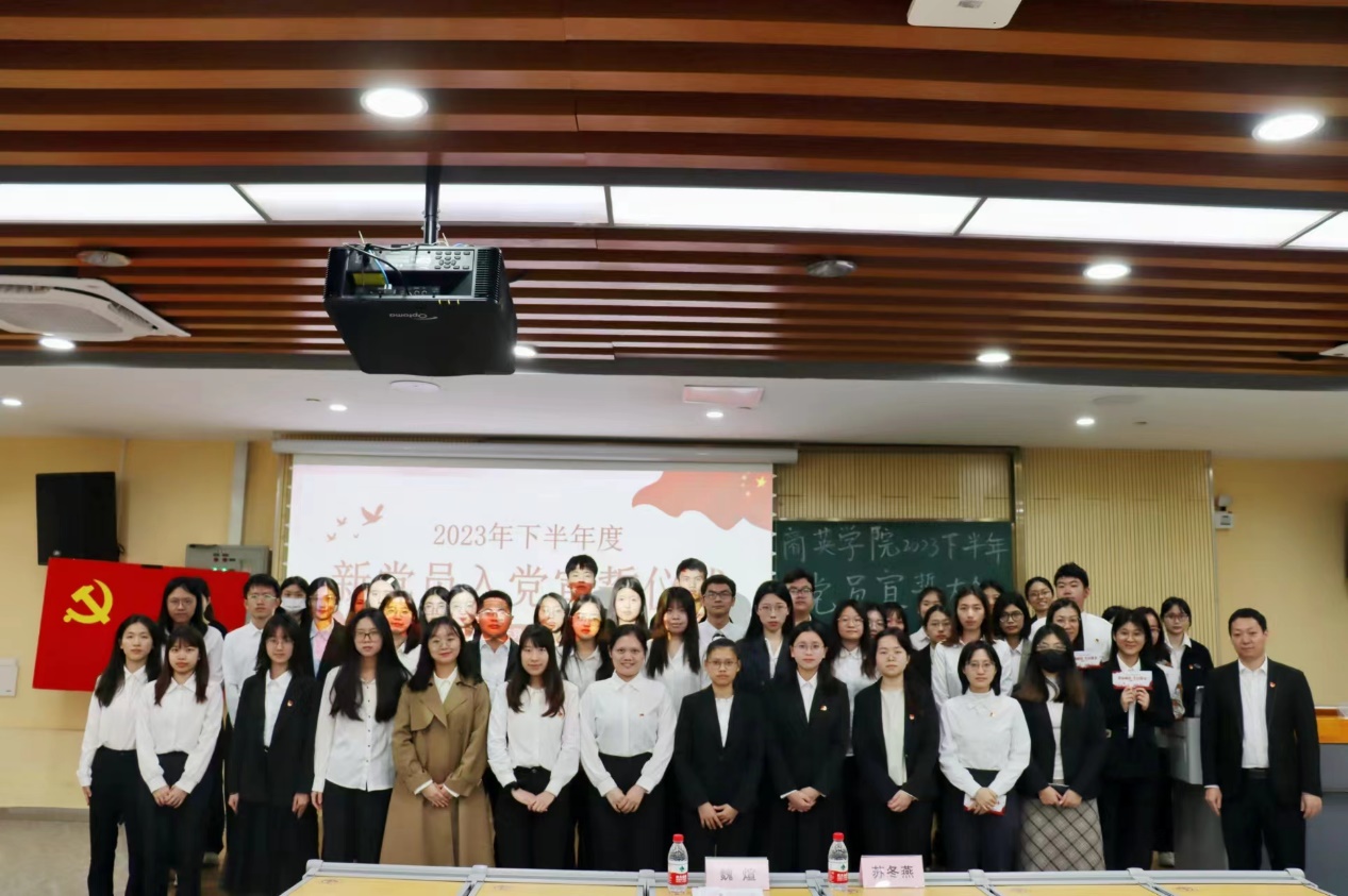 “我志愿加入中国共产党,拥护党的纲领,遵守党的章程,履行党员义务……”。2023年12月2日下午,2023年新党员入党宣誓仪式在北校区第一教学楼117室举行。44名新发展的党员代表接过党徽,佩戴于胸前,高举右拳逐个面向党旗庄严宣誓。公司党委书记苏冬燕、组织员魏煊、各党支部正式党员代表见证了宣誓仪式。