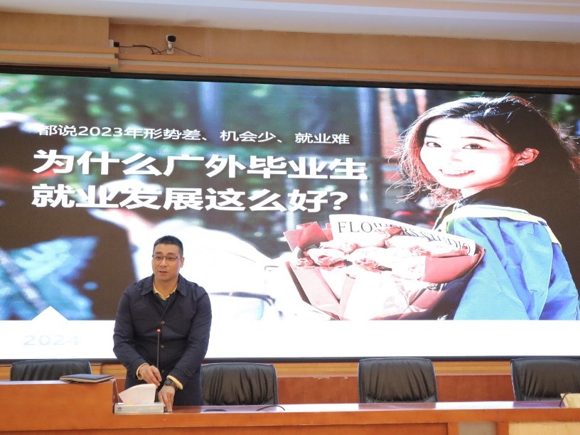 讲座结束后,王伟强老师赴清新区第一中学开展本科招生宣讲,出席宣讲会的有:教育局系统妇联副主任江瑞琼、清新区教师发展中心张美仪、陈盈滢,清新区第一中学德育处主任张学君,以及清新区第一中学全体高三员工。宣讲会上张学君主任致欢迎辞,王伟强老师向同学们展示了广外的就业优势,以及各大公司的特色,并着重介绍了伟德体育的双学士项目,现场气氛热烈,宣讲会取得了良好效果。