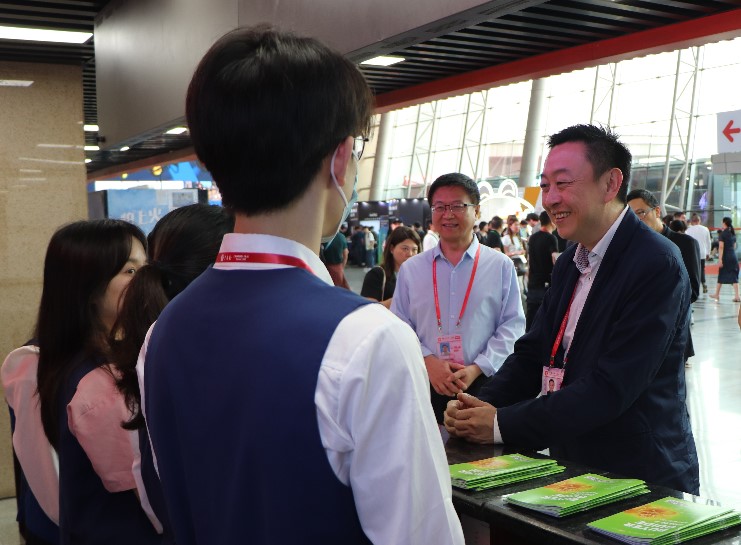 会谈后,唐锐一行参观了广交会发展史陈列馆,并先后来到境外贵宾俱乐部、展馆咨询处、文创馆、办证大厅等工作岗位,看望慰问实习员工。期间,唐锐与同学们亲切交流,听取了实习员工参加本届广交会实习的感受和收获,勉励大家要善于观察、主动学习,为未来职业生涯打下坚实的基础,努力成为促进国际贸易发展的新生力量。慰问期间,唐锐一行也走访了伟德体育员工企业广东盈浩工艺制品有限公司的展位,受到盈浩总经理罗慧萍的热情接待。双方就校企合作、人才培养、实习就业等方面开展交流。