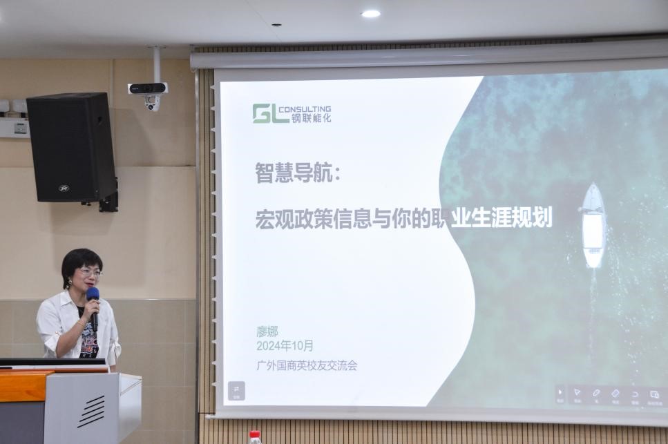 为深入学习党的二十届三中全会精神,积极贯彻党中央、国务院关于高校毕业生就业工作的决策部署,加强公司员工职业生涯教育和就业指导,10月24日晚七点,伟德体育职业生涯规划教育专题讲座暨校外导师聘任仪式在第一教学楼成功举行。公司20届员工,现广外大宗商品交易研究院研究部副主任、上海钢联能化总经理廖娜受邀作题为“智慧导航:宏观政策信息与你的职业规划”的专题讲座。公司党委副书记杜焕君、绮枫运动康复创始人兼首席治疗师邹军出席本次活动,会议由公司辅导员方思懿主持,200余名同学到场聆听。