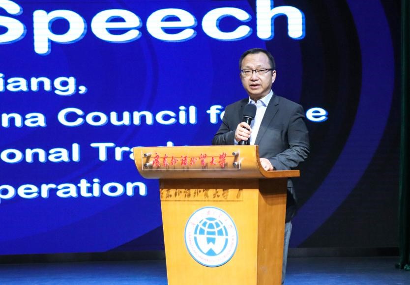 中国对外贸易经济合作企业协会副会长郑樑随后致辞。他对本次赛事的主题给予了高度评价并向此次赛事的命题专家表示了由衷的敬意,感谢他们为推动商务英语的发展所做出的杰出贡献。他强调,商务英语专业的员工是联接中外经济交流的桥梁,是推动全球商务合作的重要力量。他对即将在赛场上展现风采的员工们寄予了厚望,期待他们能够以出色的表现,为商务英语的实践与发展注入新的活力。