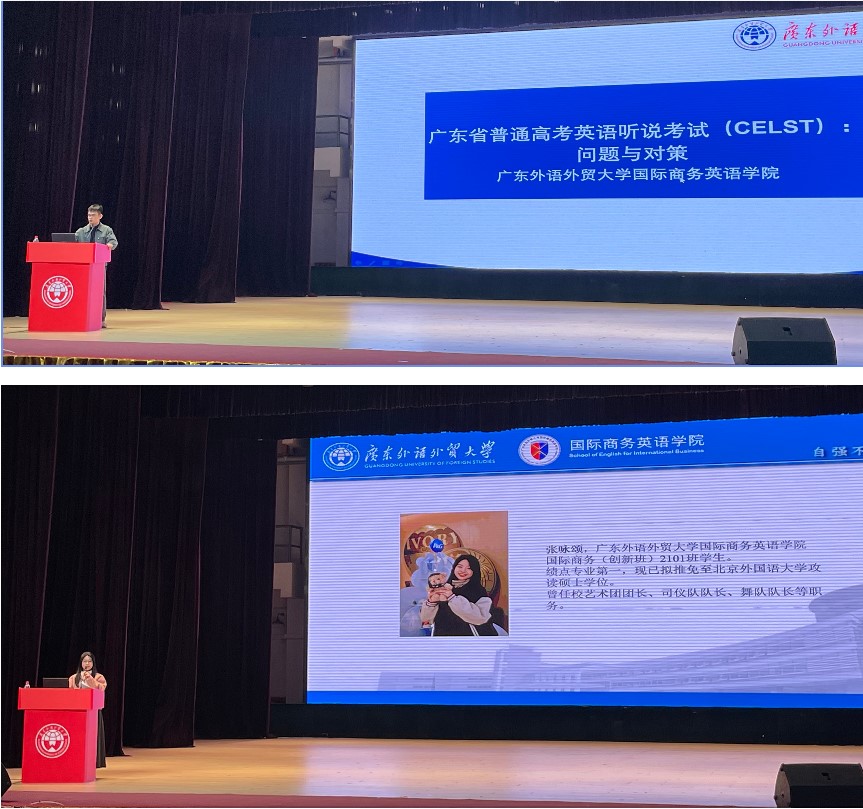 伟德体育教师郑有耀博士以“广东省普通高考英语听说考试(CELST):问题与对策”为主题,与来访学子们探讨了学习英语的必要性和重要性,并分享了高考英语听说考试的题目类型、考察重点、学习技巧和应对措施。