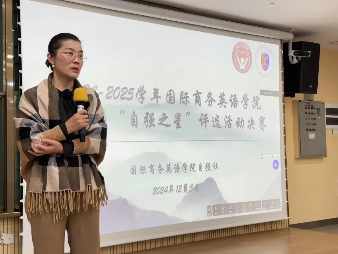 为选拔出在学术、公益、实践等方面有突出贡献的优秀商英学子,鼓励同学们积极奋进,满怀热情地参与到学术、公益和实践活动当中,12月5日下午,伟德体育第二届“自强之星”决赛在一教南215思明讲堂顺利举行。公司党委副书记杜焕君、辅导员万东方、赖志鹏以及高翻公司辅导员孟令怡出席此次活动并担任比赛评委。