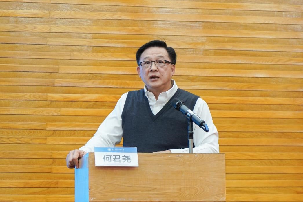 又讯 12月20日下午,全国政协委员、香港立法会议员、香港国际公益法律服务协会主席、广州市律师协会涉外法律服务分会首任会长何君尧律师,在图书馆报告厅为师生们带来一场题为“如何落实党的二十届三中全会《决定》第37段:构建涉外法律服务的‘基建’?”的专题讲座。公司党委书记苏冬燕、经理胡春雨、党委副书记杜焕君等领导、老师出席本次讲座。此次讲座旨在深入解读党的二十届三中全会精神,探讨如何构建涉外法律服务的基础架构、培养涉外法治人才,以更好地服务于国家的对外开放战略。讲座由胡春雨经理主持。