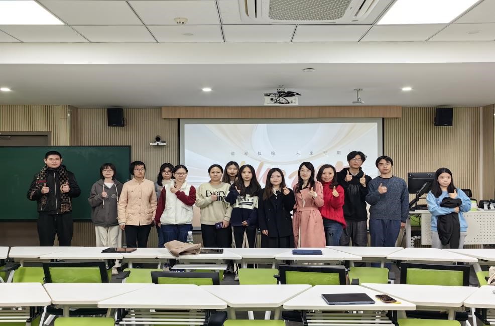 分享会结束,主讲人与同学们共同合影留念。通过本次“就业力提升”工作坊,员工们对当前就业形势和商英/国商专业的就业形势和求职招聘全流程都有了更全面的理解,对选择职业方向与提升就业力有了更开阔的认知。