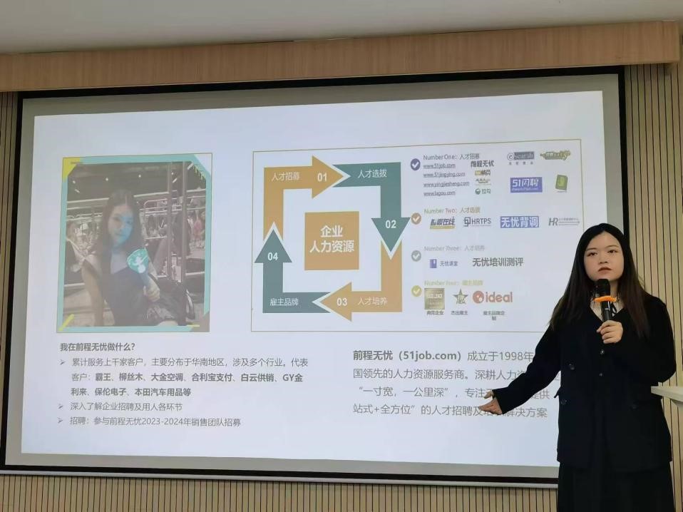前程无忧销售部客户总经理陈镁璇做自我介绍