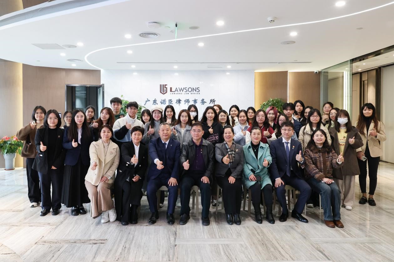 为深化校企合作,推进产学研一体化平台建设,3月6日下午,国际商务英语公司党委书记苏冬燕、副书记杜焕君率法英系教师李燕、辅导员林童等三十多位师生到广东诺臣律师事务所(以下简称“诺臣所”)走访,现场签署实践教学基地共建协议并举行授牌仪式。诺臣所党总支书记官选斌律师,管委会主任周华章律师,管委会常务副主任、财务总监曾祥敏律师,管委会副主任、青年律师工作委员会主任车天驰律师等热情接待了苏冬燕一行。