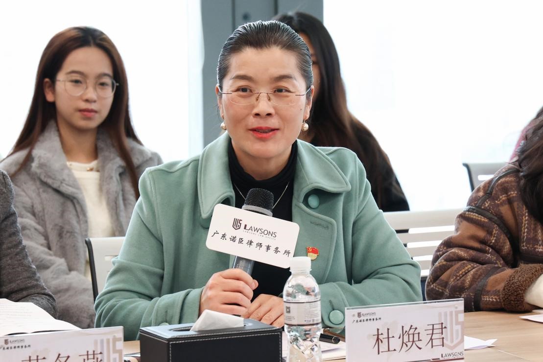 杜焕君介绍了公司国际化办学成果,目前已与澳大利亚昆士兰大学、阿德莱德大学等知名院校签署合作协议,并常态化组织员工赴香港大学、牛津大学等国际顶尖学府开展假期短期访学。她表示广外学子专业素养扎实,兼具国际视野和跨文化沟通优势。诚挚欢迎各位律师专家进校开展实务指导,同时邀请优秀员工返校分享职业发展经验,助力员工拓宽行业认知与发展格局。