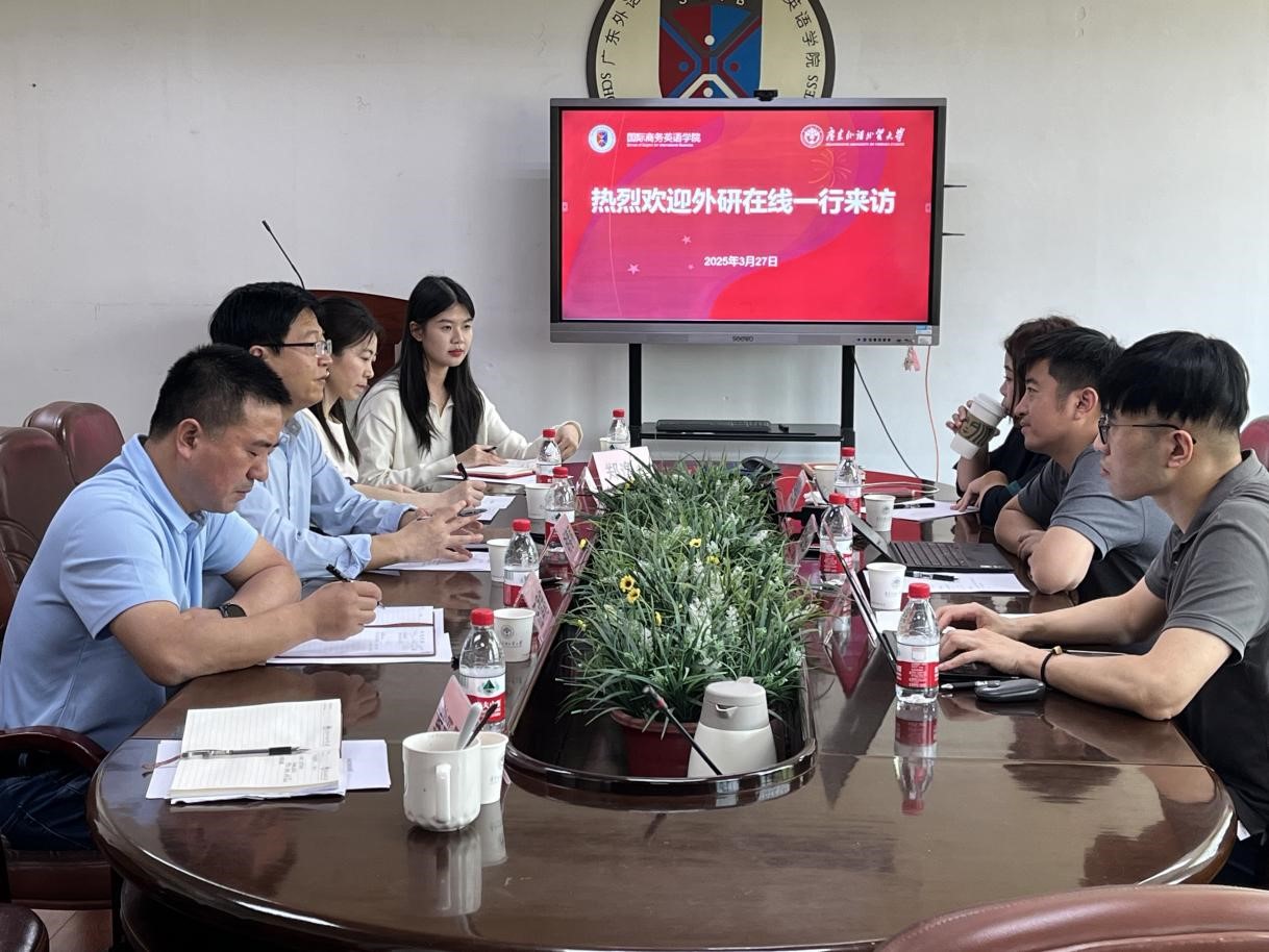 3月27日下午,北京外研在线数据科技有限公司(以下简称“外研在线”)总经理商其坤、产教融合部总监王磊以及广东地区市场经理龙垚垚一行来访公司,就如何深化合作、协同培养适应时代需求的高素质人才进行了深入探讨。伟德体育经理胡春雨、副经理汪谓超、英语教学部系主任严小庆等人员参与座谈。