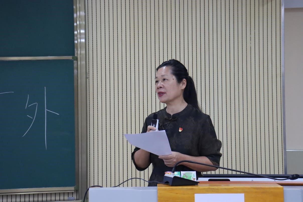 展示结束后,苏冬燕书记和王鲜萍副馆长先后致辞。苏冬燕书记在总结致辞中强调,面对复杂的国内外形势,我们不能忘记历史,要从党史校史学习中汲取奋进力量,转化为推动进步的实际行动,并对参赛选手和观众提出了三点希望和要求:一是要铸“忠诚之魂”,做理想信念的传承者。要忠诚于党、矢志报国、艰苦奋斗,用信仰之光照亮前行之路,在传承红色基因中续写‘学贯中西不忘本,扎根中国向世界’的忠诚答卷。二是要扬“广外之志”,做敢为人先的创新者。要敢闯敢试、敢为人先、迎难而上,以‘闯’的锐气、‘创’的智慧、‘干’的担当,在服务“一带一路”倡议和粤港澳大湾区建设的最前沿勇当探路先锋。三是要提“奋进之能”,做伟大事业的建设者。要胸怀天下、勇担使命、开拓进取,以“不务虚功,但求实效”的实干作风,在强国建设、民族复兴的赛道上跑出广外人的加速度。