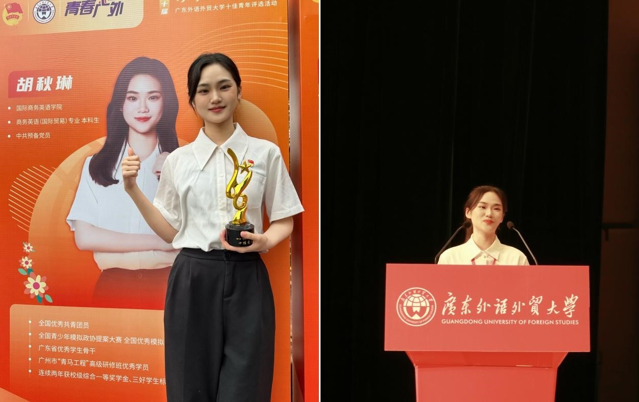 4月25日,公司第十届“青春广外·凤鸣岭南”十佳青年终审评选活动在大学城校区B8报告厅举行。经前期公司推荐、材料初审、终审答辩,公司2022级商务英语专业胡秋琳同学凭借在员工工作、社会实践等方面展现出的优秀青年学子风采,荣获2025伟德官方网站第十届“十佳青年”称号。