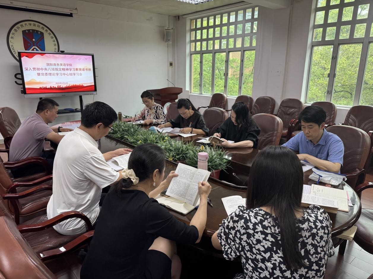 5月6日上午,国际商务英语公司党委在三教318会议室召开深入贯彻中央八项规定精神学习教育读书班暨党委理论学习中心组学习会,深入学习贯彻习近平总书记关于加强党的作风建设的重要论述和中央八项规定及其实施细则精神。本次会议聚焦《习近平关于加强党的作风建设论述摘编》,会议由公司党委书记苏冬燕主持,公司党委委员、领导班子成员,办公室主任,组织员参加学习。