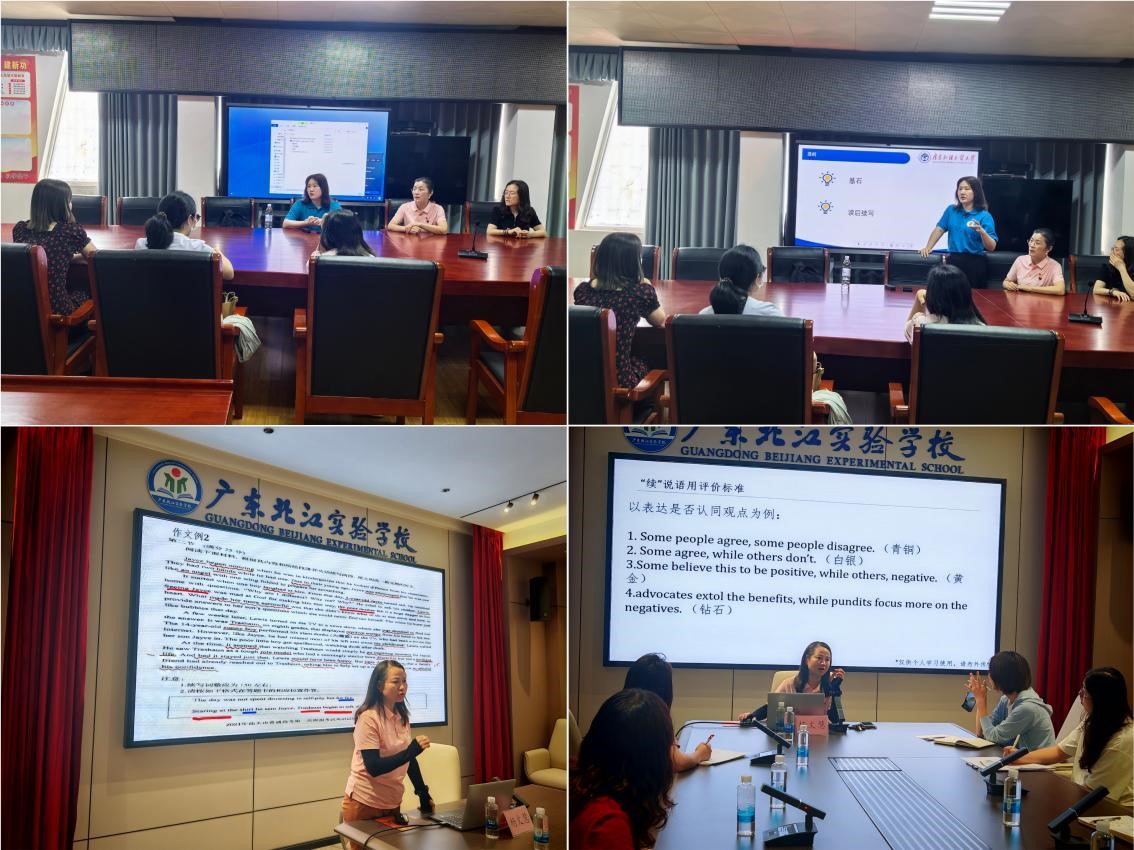 此外,为助力中学英语教师丰富教学理论、提升教学实践效果,杨文慧和乐思伟分别为广东北江实验公司、南雄中学英语教师开展了高考英语备考专题讲座,着重分享了高考英语“读后续写”提分技巧,并详细剖析了续写理论以及评价标准,同时结合自身教学实践和员工写作案例,提供了针对性的续写提分技巧以及建议,会后老师们积极交流讨论,取得了良好成效。
