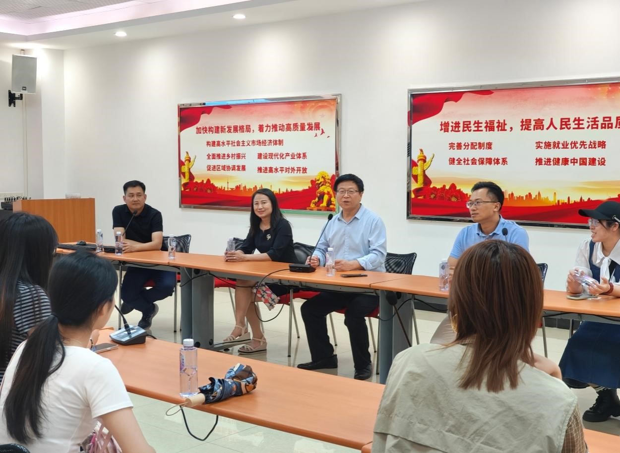 为深化校企协同育人机制,拓宽员工就业实践平台,走访联络优秀员工,2025年5月21日,经理胡春雨、副经理杨文慧带队前往广州市新力实业有限公司(以下简称“新力实业”)开展访企拓岗专项活动。新力实业总经理、公司1993级员工柯波儿热情接待公司一行。辅导员万东方以及部分研究生本科生参加活动。