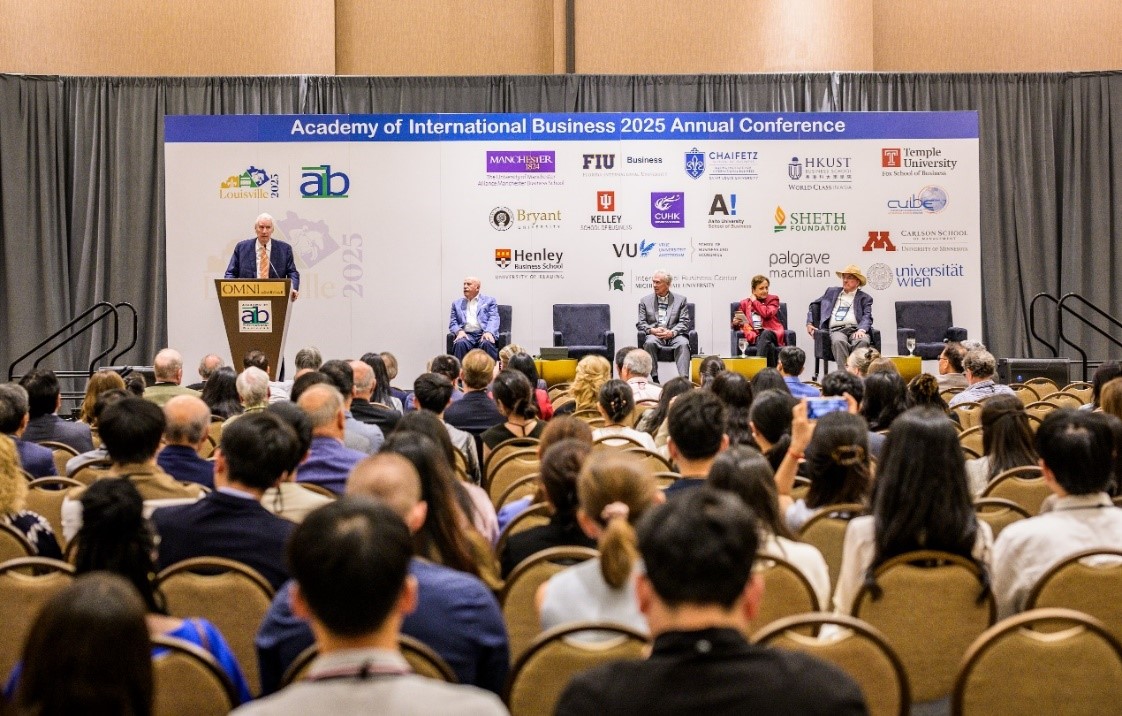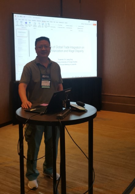 2025年6月28日至2025年7月2日,2025年国际商务学会年会(Academy of International Business,AIB 2025)在美国路易斯维尔的Omni Louisville Hotel举办,公司外教丁梁博士应邀赴美参会。本届年会围绕全球贸易、国际营销、跨国公司管理、国际金融等领域开展专题论坛、圆桌讨论会、论文发表工作坊、自由讨论会以及职业指导等活动。丁梁博士为第一作者的论文 “Effects of Global Trade Integration on Skill Polarization and Wage Disparity” 经同行评审后被本次年会接收,并在会场上进行了论文汇报和交流,展示了公司在国际贸易与劳动市场领域的学术成果。