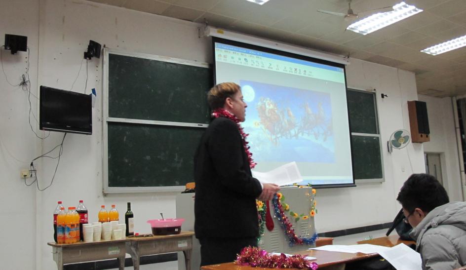在讲座的最后一个环节, Jonathan老师为同学们精心挑选了几首圣诞名曲,大家共同在悠扬欢快的歌声中结束了这一次的文化讲座。