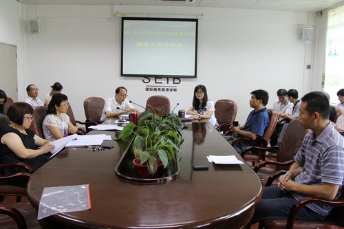 郭桂杭代表公司领导班子首先做工作总结。他指出,过去一学期公司在多个方面取得了令人满意的成绩:团队建设方面与研究生教育方面,商务英语研究博士点已经开始招生,2年制研究生顺利毕业、且培养质量喜人;旗下产业方面,2009级400多位本科毕业生圆满毕业,多名员工获得公司荣誉,2013版教学计划正在积极修订中,交易会实习任务圆满完成,全国老员工“全英商务实践大赛”正在紧张筹备中;科研方面,经过前期的投入,公司在科研方面取得重大突破,获得了3项国家社科项目;国际交流与合作方面,公司与国外大学合作日益密切,多名学子获得国外学习机会。同时,郭桂杭对公司发展的不足之处也进行了分析,如研究生生源地偏窄,一级学科和重点学科的申报和建设有待提高,教师科研意识也有待加强等。