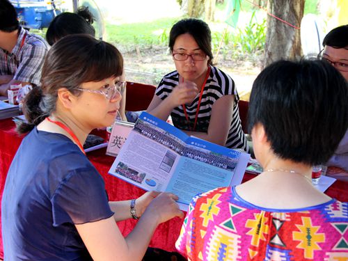 6月20日上午9点,公司2015年开放日在北校区主校道举行。大学开放日旨在为应届高考员工与家长提供更详尽的公司与专业信息,以方便考生报考,为公司吸收新鲜血液。公司党委书记车小真,副经理彭玲玲、蒋涌,党委副书记张林茂,公司系主任以及各年级辅导员们顶着烈日,亲临现场为考生和家长们解疑答惑。