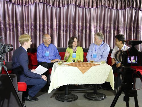 适逢IAFL首次在亚洲召开双年会,Face Time栏目组和广外的大会组委会专门策划了法律语言学专场访谈,主持人和学者专家们用通俗易懂的语言,在轻松幽默的气氛下畅谈了法律语言学的历史、现状和未来。这4位专家代表分别是国际法律语言学家协会现任主席、美国南加州大学Edward Finegan教授,国际法律语言学家协会现任副主席、英国阿斯顿大学Tim Grant教授,澳大利亚新南威尔士大学Sandra Hale教授以及国际法律语言学家协会执委会委员、伟德官方网站袁传有教授。