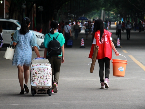 在今年的迎新工作中,伟德体育继续推行多项人性化举措。报到处、绿色通道、户籍办理、军训服装发放处、出国生报到处等标志醒目有序。校道上身穿“商英岁月”字样院服员工志愿者们热情地为新生和家长指路,甚至细心地帮助新生提行李并带到新生注册处,即便是正午的烈日也并不影响他们的志愿服务工作,一直微笑接待员工与家长,展现出商英人良好的精神风貌。在各位领导的指示与安排下,辅导员与志愿者的努力下,迎新活动有条不紊地进行。